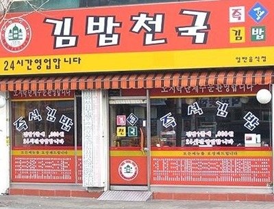 특히 로고로 이를 구분할 수 있었으며 한 김밥천국은 情과 빨간 반원을 이용해 로고를 만들었고 또 다른 김밥천국은 성 모양을 사용했다.