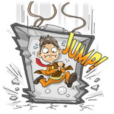 만약 떨어지는 엘레베이터에서 점프를 할 경우 머리가 천장에 부딫히고 다시 바닥으로 떨어져 큰 부상을 당할 수 있다.